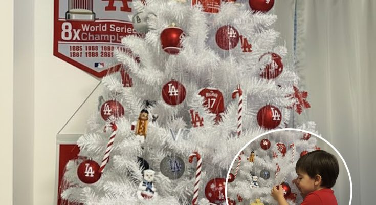 Just look at this incredible display! 🤩 Instead of a traditional color scheme, this white Christmas tree is an absolute shrine to the Los Angeles Dodgers. Every single detail, from the vibrant red and white ornaments to the iconic “LA” logo, screams dedication.