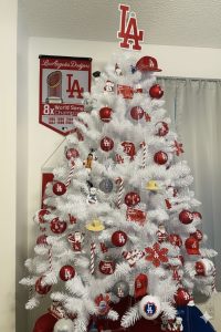 Narrative: The image tells a story of pride and tradition. It suggests that for the person who decorated this tree, the Dodgers are not just a team, but a fundamental part of their life, woven into even the most personal and intimate celebrations like Christmas.